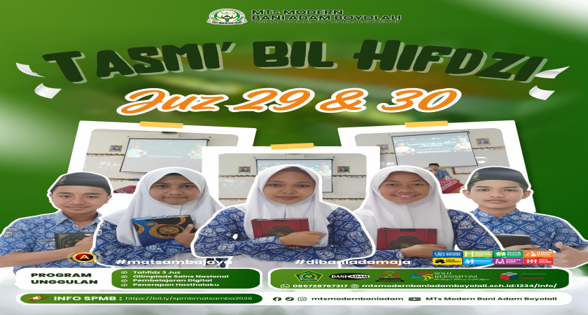Boyolali, 11 Februari 2026 – Suasana khusyuk dan penuh haru menyelimuti aula MTs Modern Bani Adam Boyolali pada Rabu pagi. Madrasah kembali menggelar agenda unggulan Tasmi’ Al-Qur’an Bil Hifdzi, sebuah uji publik hafalan di mana para santri melantunkan ayat-ayat suci Al-Qur'an secara sekali duduk di hadapan para penguji dan orang tua.